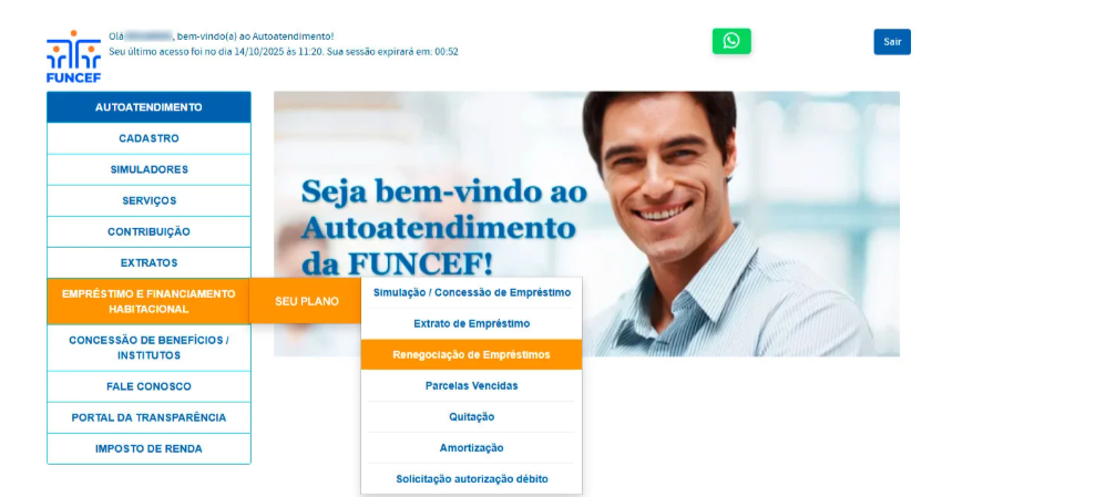 A adesão pode ser feita diretamente pelo Autoatendimento do site da Funcef, com simulação das novas condições antes da efetivação da renegociação.