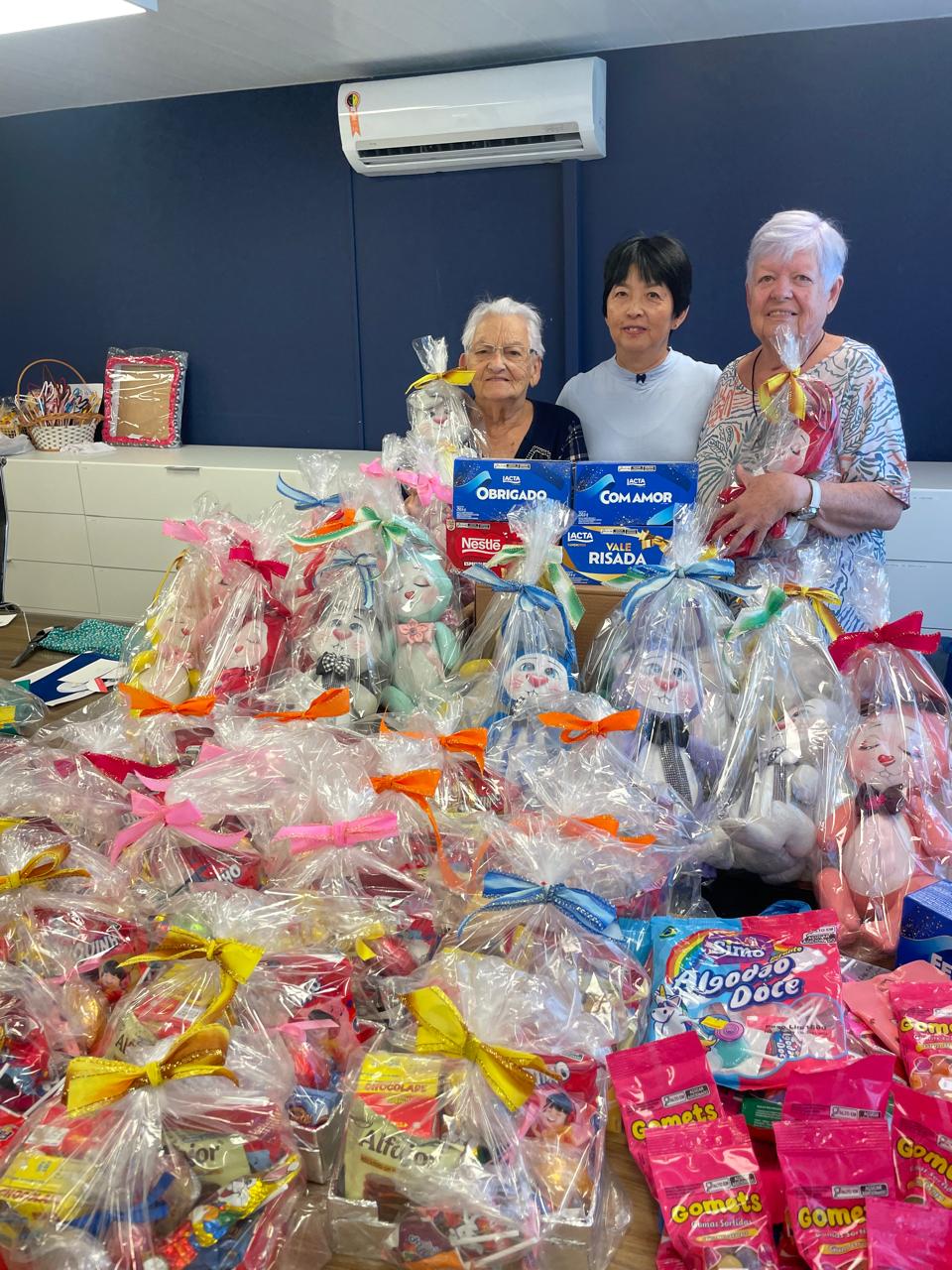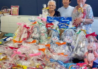 “Cumprimos o nosso objetivo, da oficina, de tornar o dia de Páscoa mais feliz para as crianças carentes. É importante essa ação principalmente por proporcionar alegria e prazer às crianças, e também satisfação às amigas da oficina. Aqui é um lugar de lazer onde produzimos muitas coisas que geram recursos para doação, tanto para o lar de idosos como lar das crianças”, diz a participante da Oficina Solidária, Elisabete Joly dos Anjos.