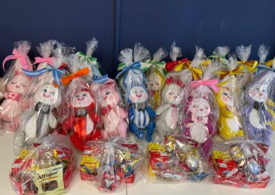 Todo o valor proveniente do bingo, somado a chocolates, doces e pacotes de balas arrecadados pela Oficina, foi destinado à confecção de cestas de Páscoa que foram encaminhadas para doação ao Lar Moisés, que atende cerca de 20 crianças em situação de vulnerabilidade. Além disso, o local recebeu coelhos de pano artesanais. A entrega de todas as doações aconteceu em 2 de abril.